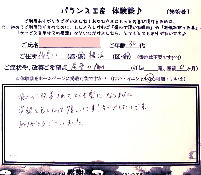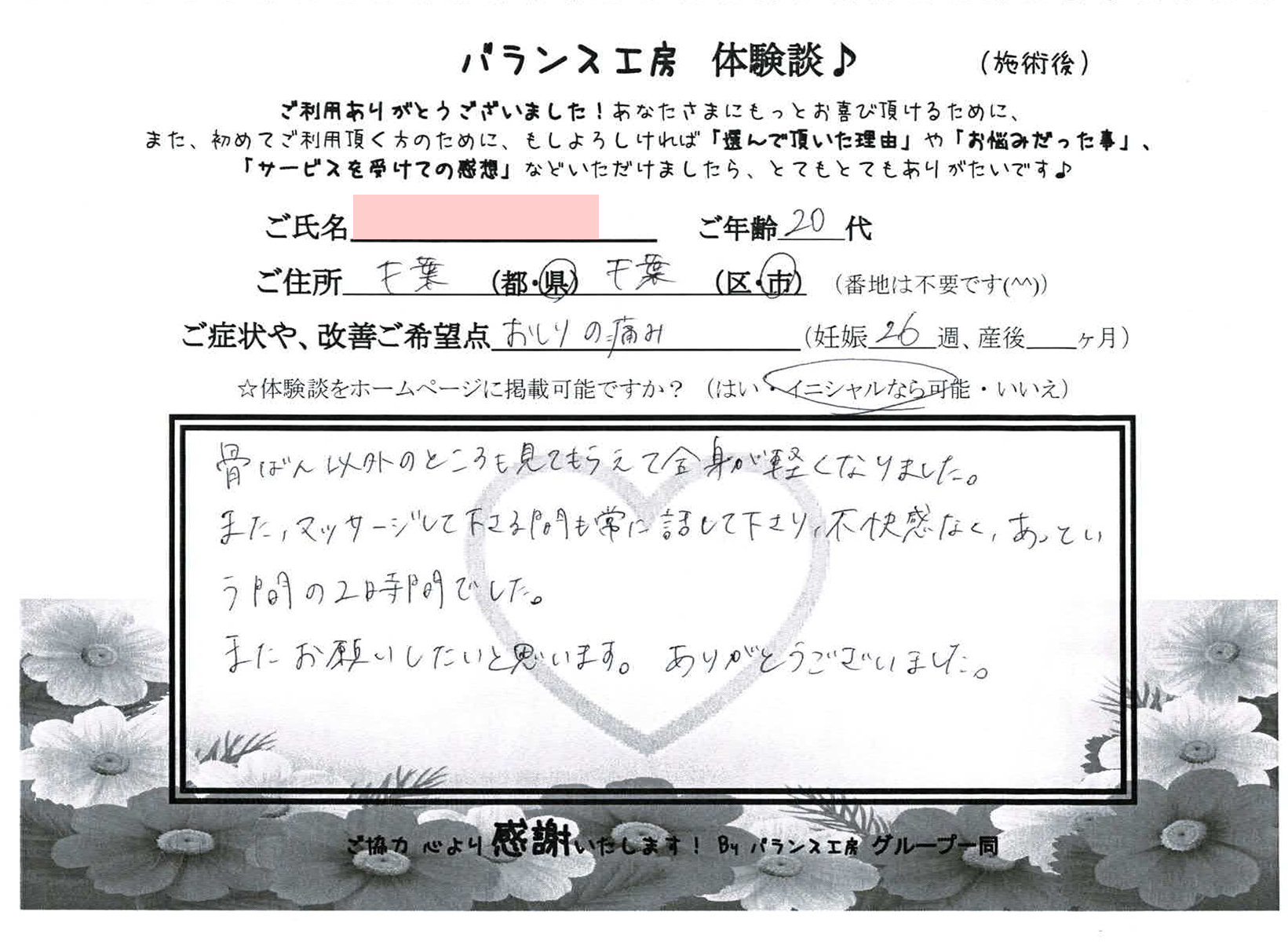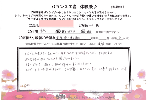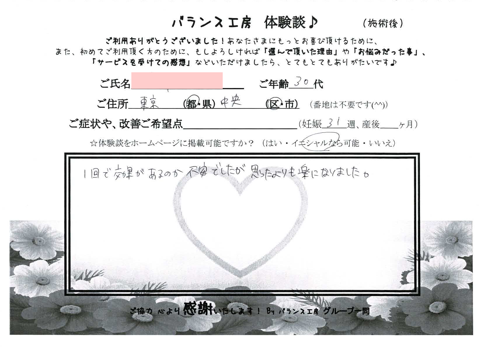 「 産後のおしりの痛みが一回で・・・感動しました 」