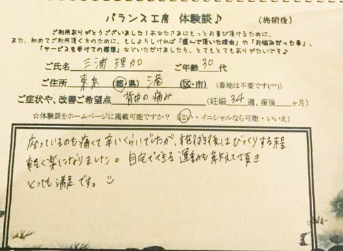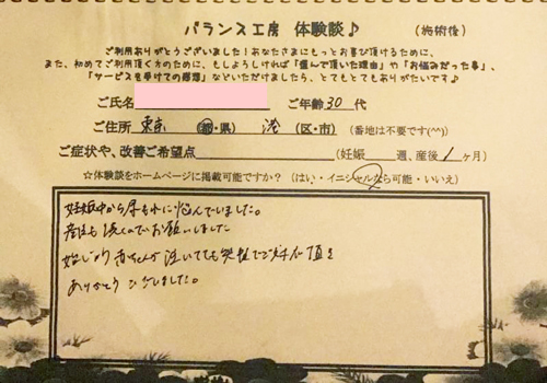 妊娠3ヶ月後半 悪阻 腰痛・太もも(激痛)肩こり妊娠中(妊婦)整体 口コミ