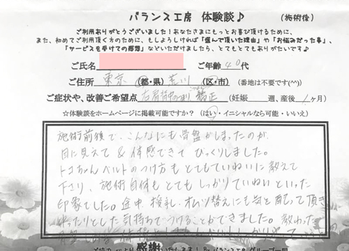 バランス工房式 産後骨盤矯正 整体をお受けいただきました!