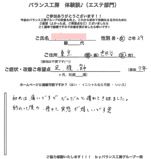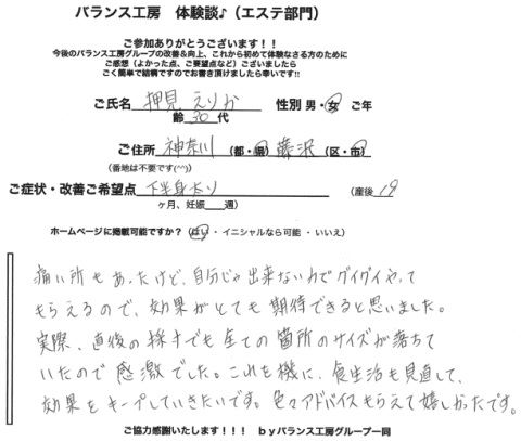 産後お一人目「毎回少しづつ細くなっていくのがわかると頑張れます」