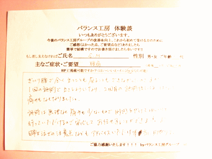 「 痛みの解消に感激でした!! 」