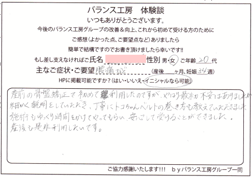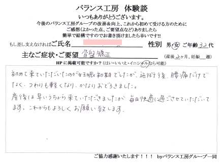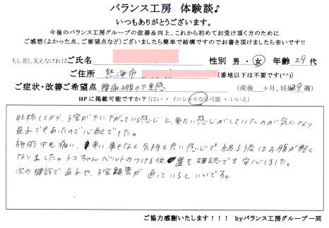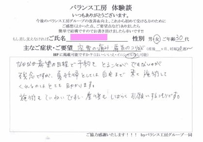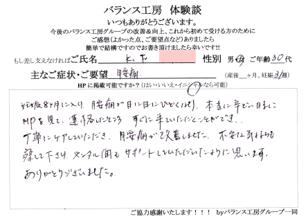 「 妊娠8ヶ月、腰痛が改善しました! 」