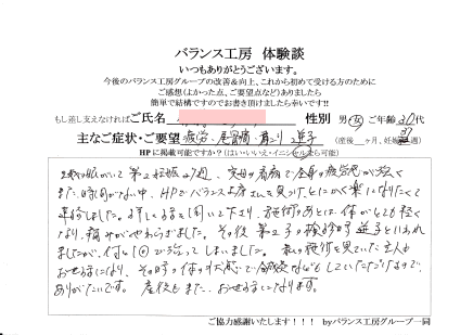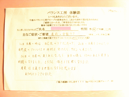 産後やっぱり尾骨が痛かったんですが、一回やって頂いただけで、