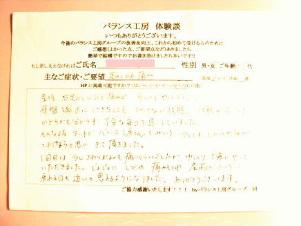 痛みが少しでもよくなれば・・・との思いでしたが、