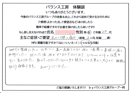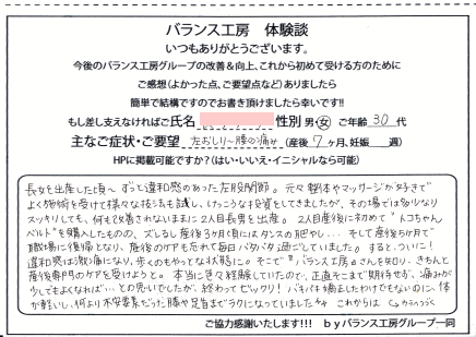 そこで「バランス工房」さんを知り、きちんと産後専門のケアを受けようと。