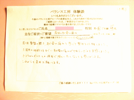 「1回の施術で良くなる」とのバランス工房さんの体験談の数々に