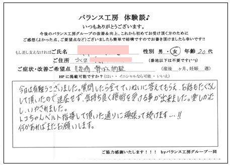 (バランス工房は、トコちゃんベルト正規認定取扱店です)産後のお客様写真