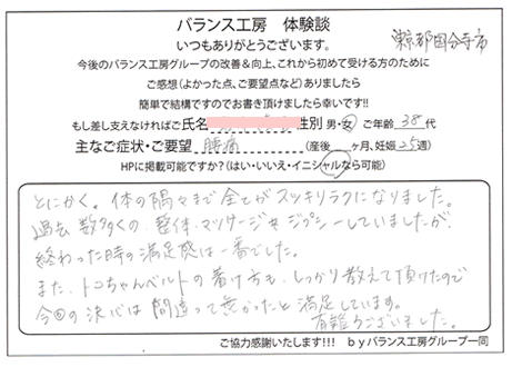 (バランス工房は、トコちゃんベルト正規認定取扱店です)産後のお客様写真
