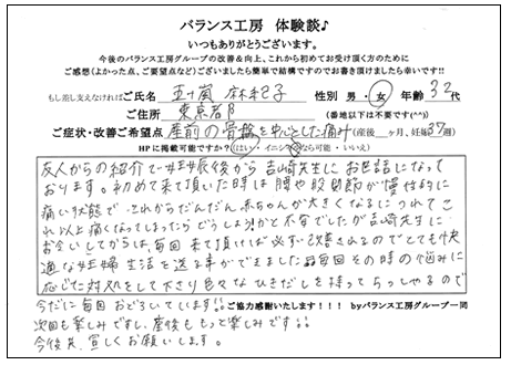 上記は、「バランス工房式 産後(妊娠中)の骨盤矯正」を