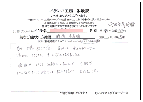 上記は、「バランス工房式 産後(妊娠中)の骨盤矯正」を