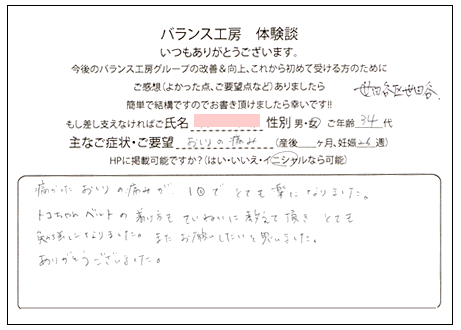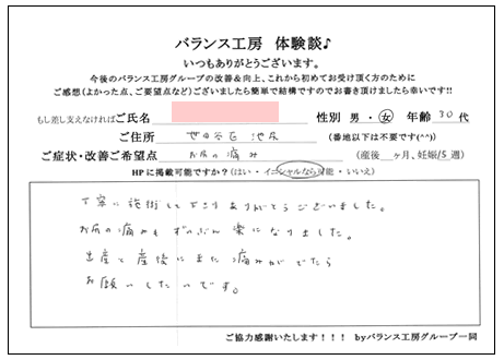 上記は、「バランス工房式 産後(妊娠中)の骨盤矯正」を