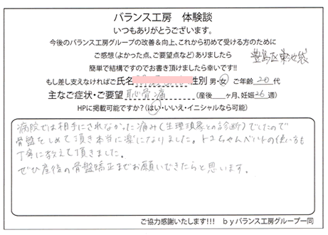 上記は、「バランス工房式 産後(妊娠中)の骨盤矯正」を
