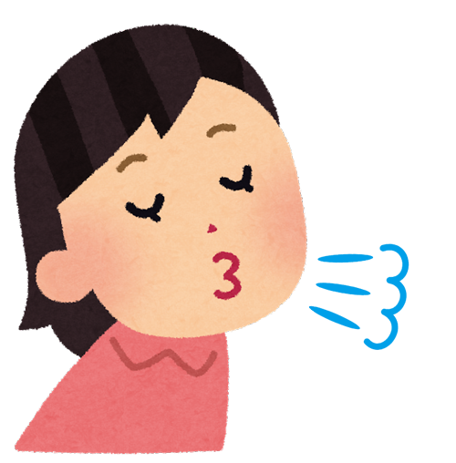 - ・ゆっくり口から3秒吐いて、ゆっくり鼻から3秒吸う。※吐く息から始める