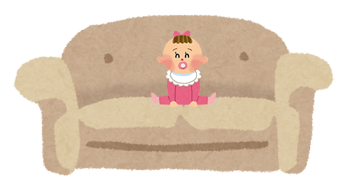 背もたれに支えてもらえば、ソファーでお座りとかも可能です。