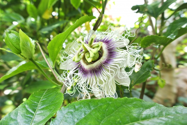 パッションフラワー…パッションフラワーには鎮静効果があり、神経の緊張や精神的な不安を和らげてくれます。過度の緊張や精神上の不安から起こる過敏性腸症候群や不眠、頭痛、神経痛、ストレス性の高血圧や喘息などに効果を発揮します。