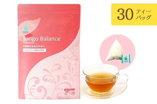 AMOMA産後バランスブレンド…「妊娠前と比べて、毎月の女性特有の周期的な体の変化やイライラを感じやすくなった」というのは、妊娠・出産を経験した多くの女性が抱える悩み。その原因は、出産を機に起こる大きなバランスの変化です。産後バランスブレンドは、そんな悩みを抱える女性のために妊産婦ケアの専門家と共に開発したノンカフェインのハーブティーです。育児中の女性をサポートする8種のオーガニックハーブをブレンドしています。