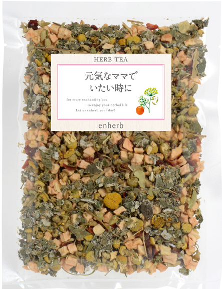 enherb 元気なママでいたい時に…フェンネルやラズベリーリーフなどが、女性の機能をしっかりサポート! 大地の恵みを蓄えたハーブのブレンドが、ママの元気と笑顔を、美味しくチャージしてくれます。