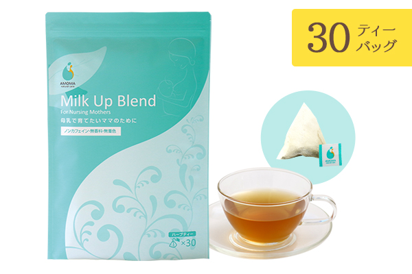 AMOMAミルクアップブレンド…母乳の出が気になる授乳期ママのために英国ハーバリストと授乳ケアの専門家が共同で開発した母乳育児サポートハーブティーです。 ヨーロッパや中国で古くから授乳期ママの飲み物として愛用されてきた8種のハーブを厳選して配合しました。原料には、オーガニック認証または無農薬栽培のハーブのみを使用しています。